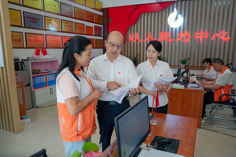云南省陆良县纪委监委把整治形式主义为基层减负作为锲而不舍落实中央八项规定精神的重要抓手,下沉基层一线走访调研,精准揪出形式主义顽疾,及时推动问题整改。图为该县纪检监察干部在同乐街道朝阳社区向工作人员了解减负措施落实相关情况。(云南省陆良县纪委监委 王勇 摄)