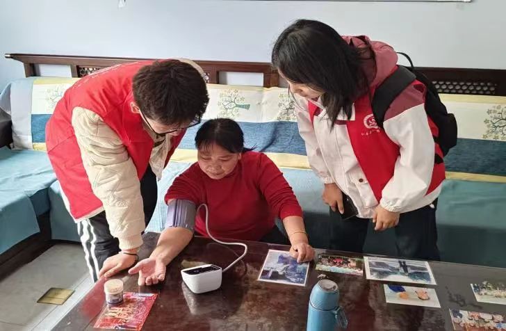 活动过程中,志愿者分为三组,分别在两个社区内为社区居民进行健康检测、入户健康宣讲以及采访调研等。在社区网格员的热情指引下,志愿者同学们入户为行动不便、年龄较大的老年人量血糖、血压,向老人们详细讲解生活保健知识和养生常识。居民们纷纷参与到活动中来。