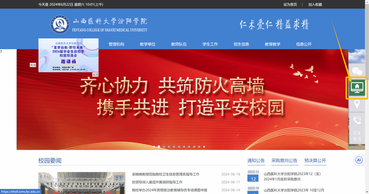 申请流程:融合服务门户--保卫处--在线办理--填写信息及查询情况--选择辅导员姓名--提交
