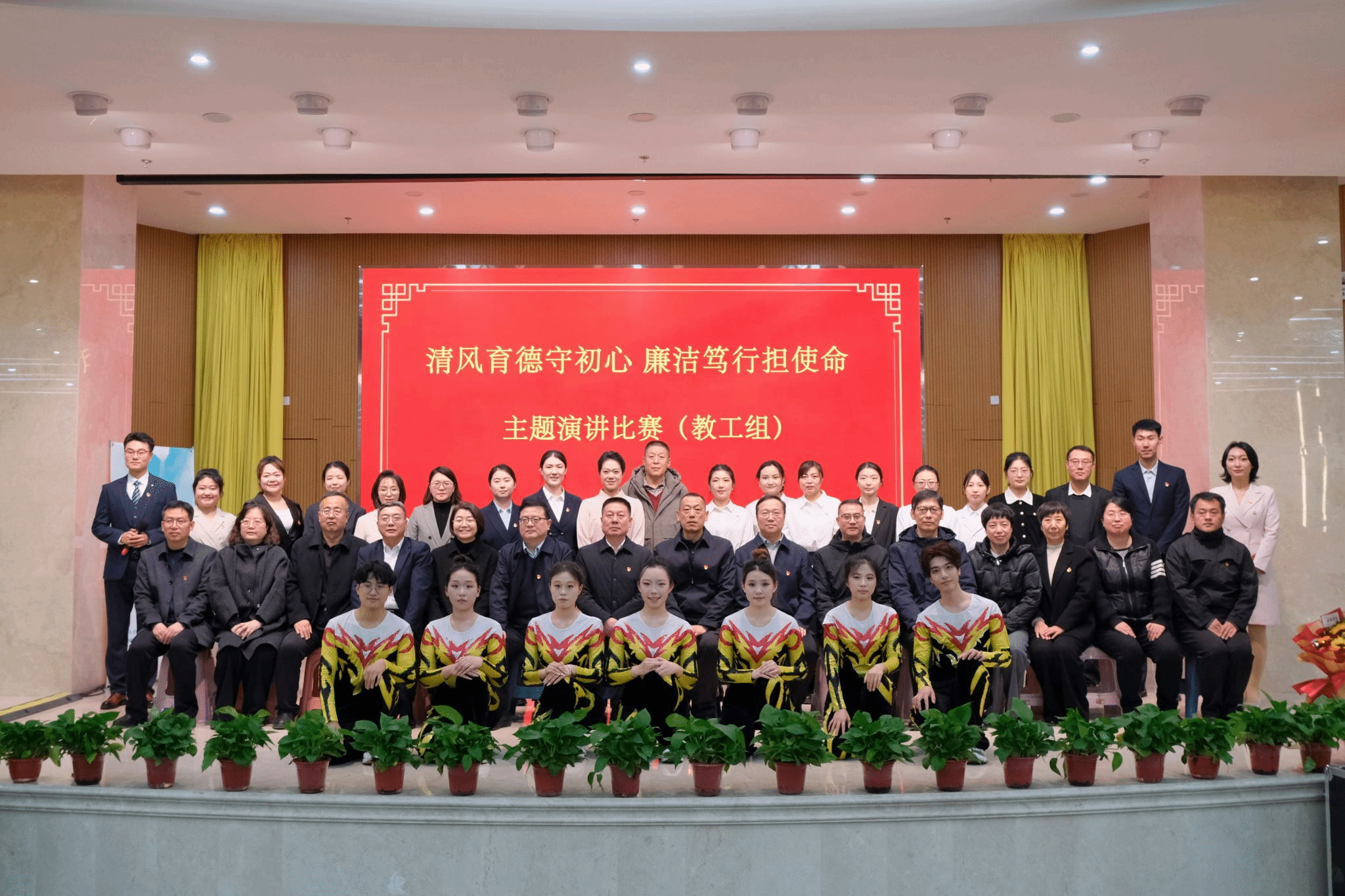 为推动深入贯彻中央八项规定精神学习教育常态化长效化,建设清廉学校,教育引导党员干部廉洁自律树榜样、教师廉洁从教正己身、学生廉洁成长重品德,营造风清气正育人环境,我校于11月26日和12月10日分别举办了学生组和教师组“清风育德守初心 廉洁笃行担使命”主题演讲比赛。比赛由校党委、纪委主办,党委宣传部、工会、团委承办,校领导和近600名师生代表观看了比赛。