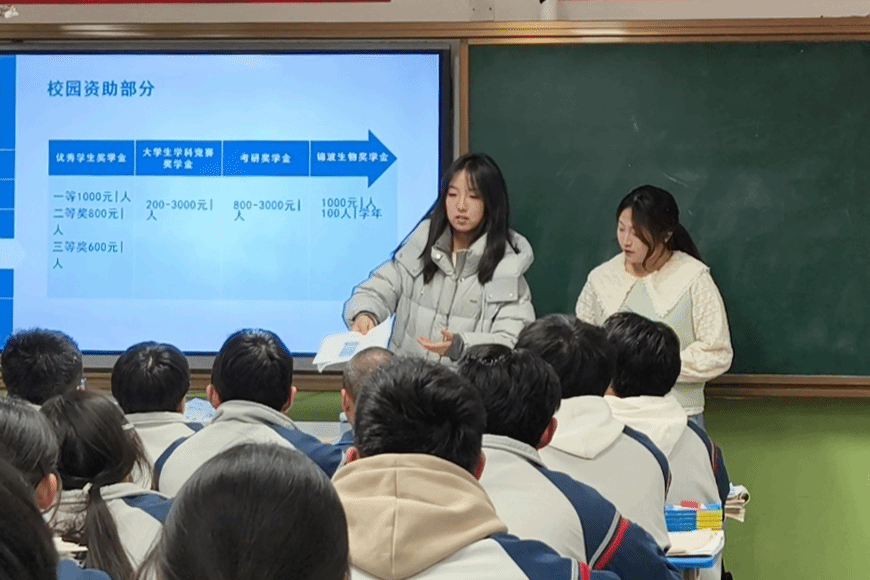 活动中,我校资助宣传大使们带着学校的嘱托与期望,分赴我校生源地中的全国20余个省、50余个地市县、80余所高中,以实际行动传递政策温度,成为国家资助政策传播的“移动名片”。通过专题宣讲、成长分享,系统讲解国家与学校“奖、贷、助、勤、免、补、资、偿”八位一体的资助体系,以自身从受助到自强、从追梦到圆梦的成长故事为范例,让家乡学子清晰了解求学路上的“政策保障网”,切实消除家庭经济困难学子的求学顾虑。