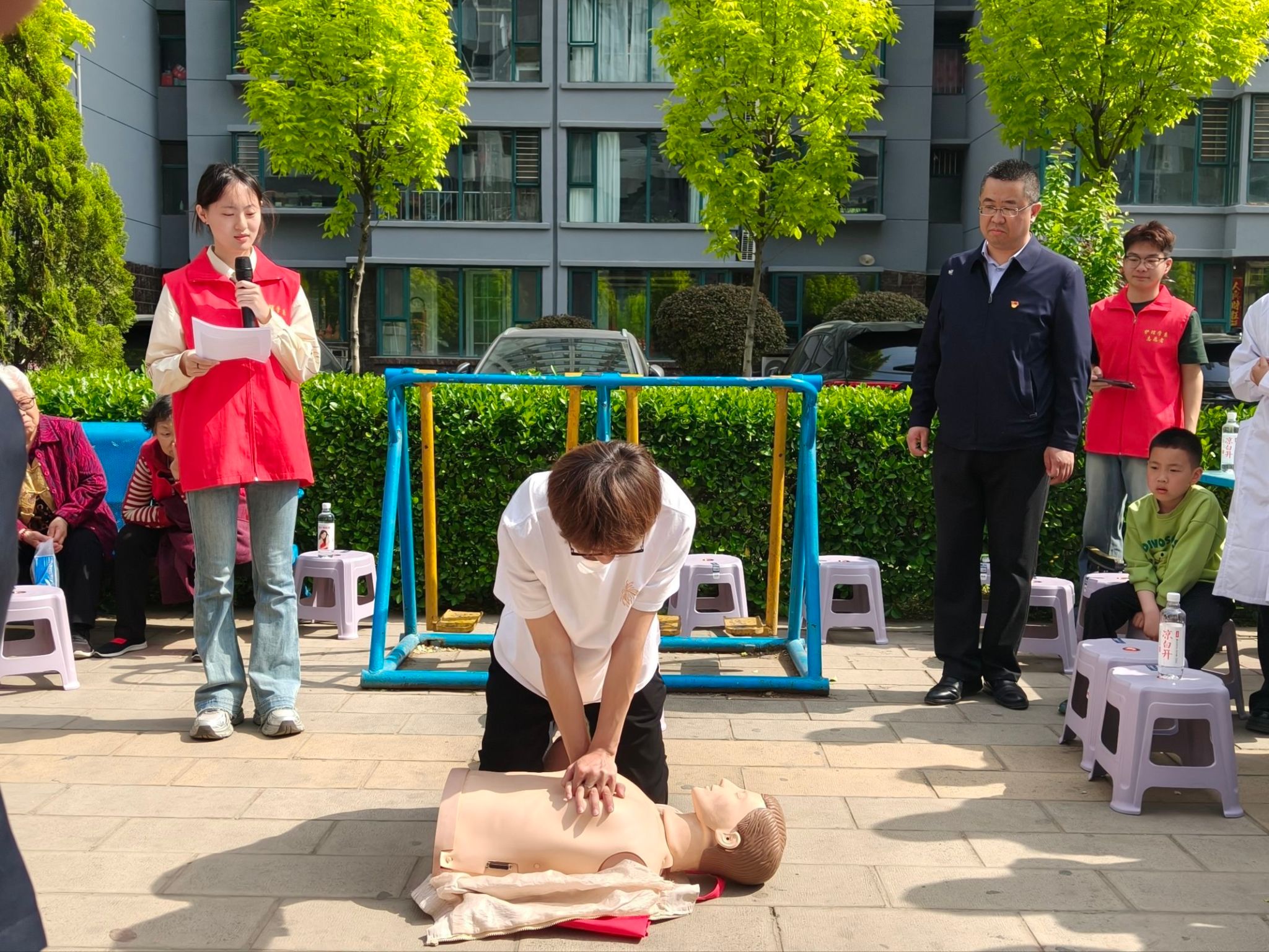 为深入学习贯彻党的二十大精神,扎实推进高校“双带头人”教师党支部书记“强国行”专项行动,推动党建工作与专业服务深度融合,切实把健康服务送到群众身边,4月19日,护理学院党总支第一党支部老师和学院团委学生会实践部志愿者赴北门社区逸景华庭开展“党建引领强服务 急救护航暖社区”主题党日活动,以党建带动团建,以专业所长践行初心使命,用实际行动守护居民健康、助力健康中国建设。