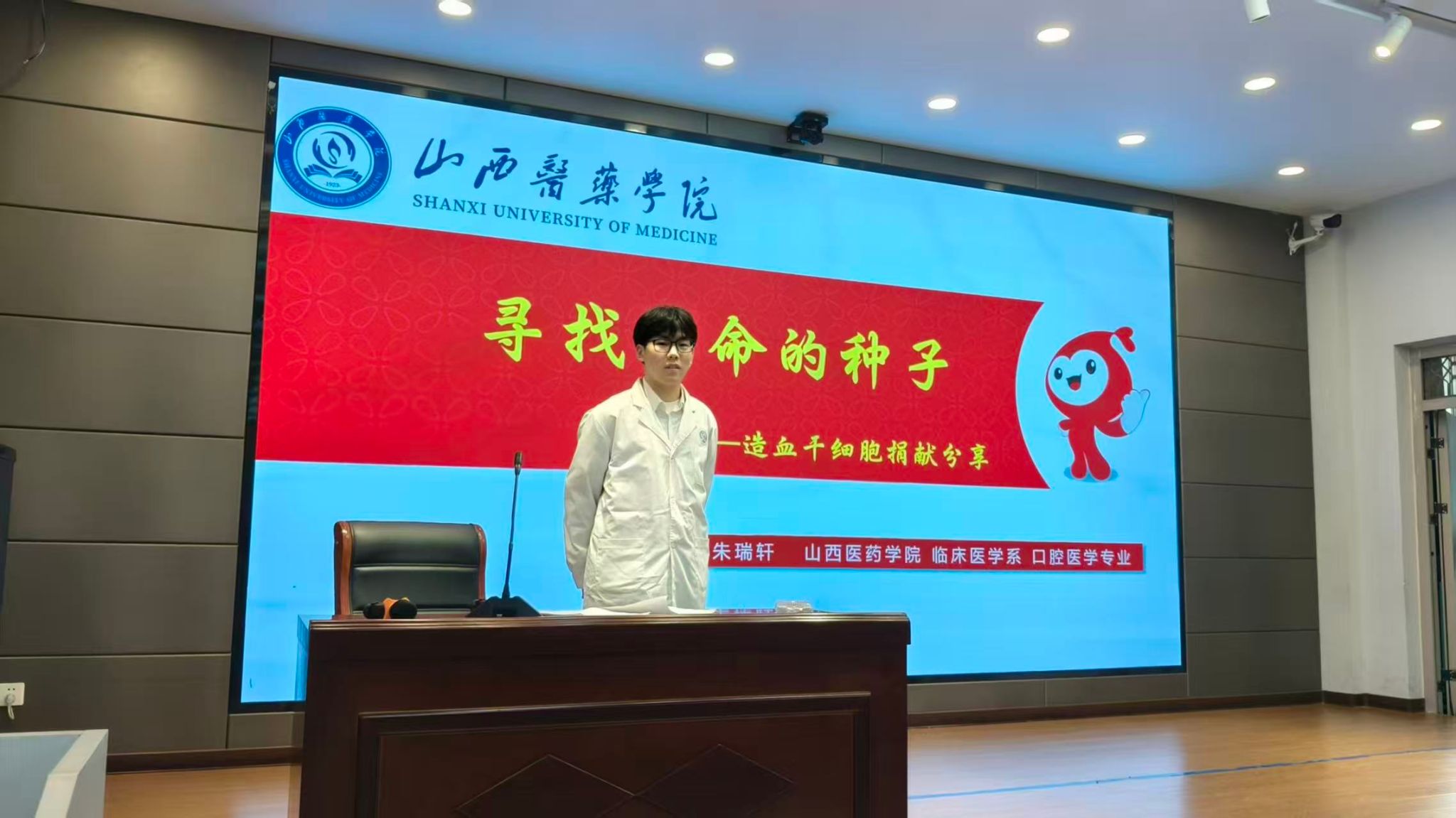 恰逢第十一个“世界骨髓捐献者日”,我校口腔医学专业学生、校第一例造血干细胞捐献者朱瑞轩同学还为五年级学生带来专题宣讲。他结合自身捐献经历,分享从初筛匹配到成功捐献的全过程,诠释奉献意义与生命价值,并倡导同学们树立社会责任意识,真挚分享赢得现场经久不息的掌声。