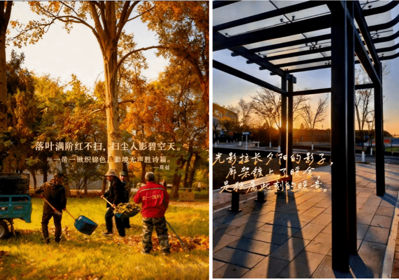 有人拾起一片银杏,写下“一叶知秋意,闲庭描语径”;有人驻足楼前,看“秋阳弄光影,疏树金错落”。每一帧被收藏的画面,都像风不曾翻走的诗页;每一段相配的文字,都如秋露般清澈动人。