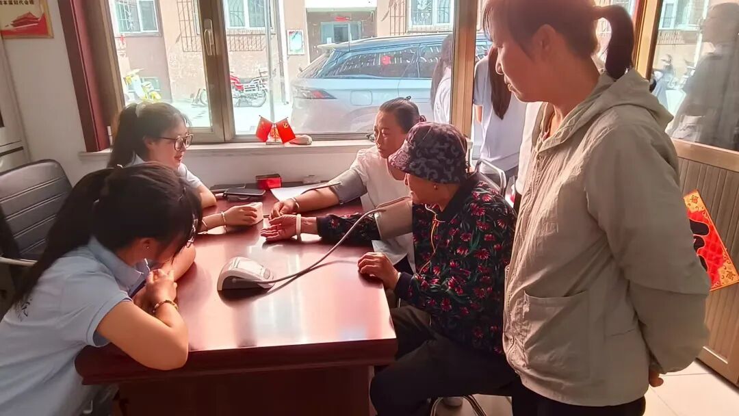 活动现场,队员们发挥专业特长,为村里老人免费测量血压,用通俗易懂语言讲解高血压等慢性病日常管理,答疑解问、耐心普及健康保健知识,并结合实际病例讲解夏季防暑、合理用药等医学常识。