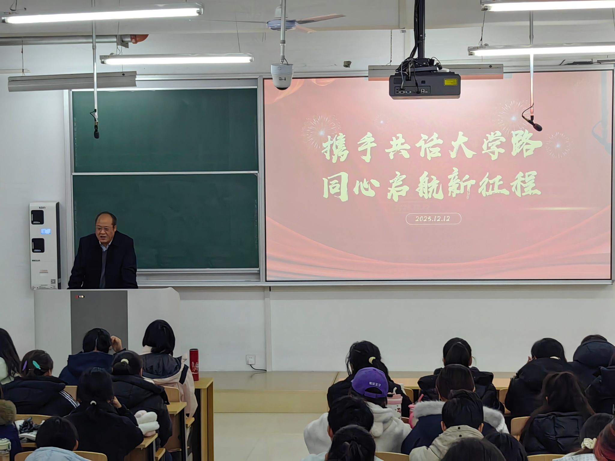 携手共话大学路 同心启航新征程——孝义校区管委会主任尹锡昊深入班级与同学深入交流