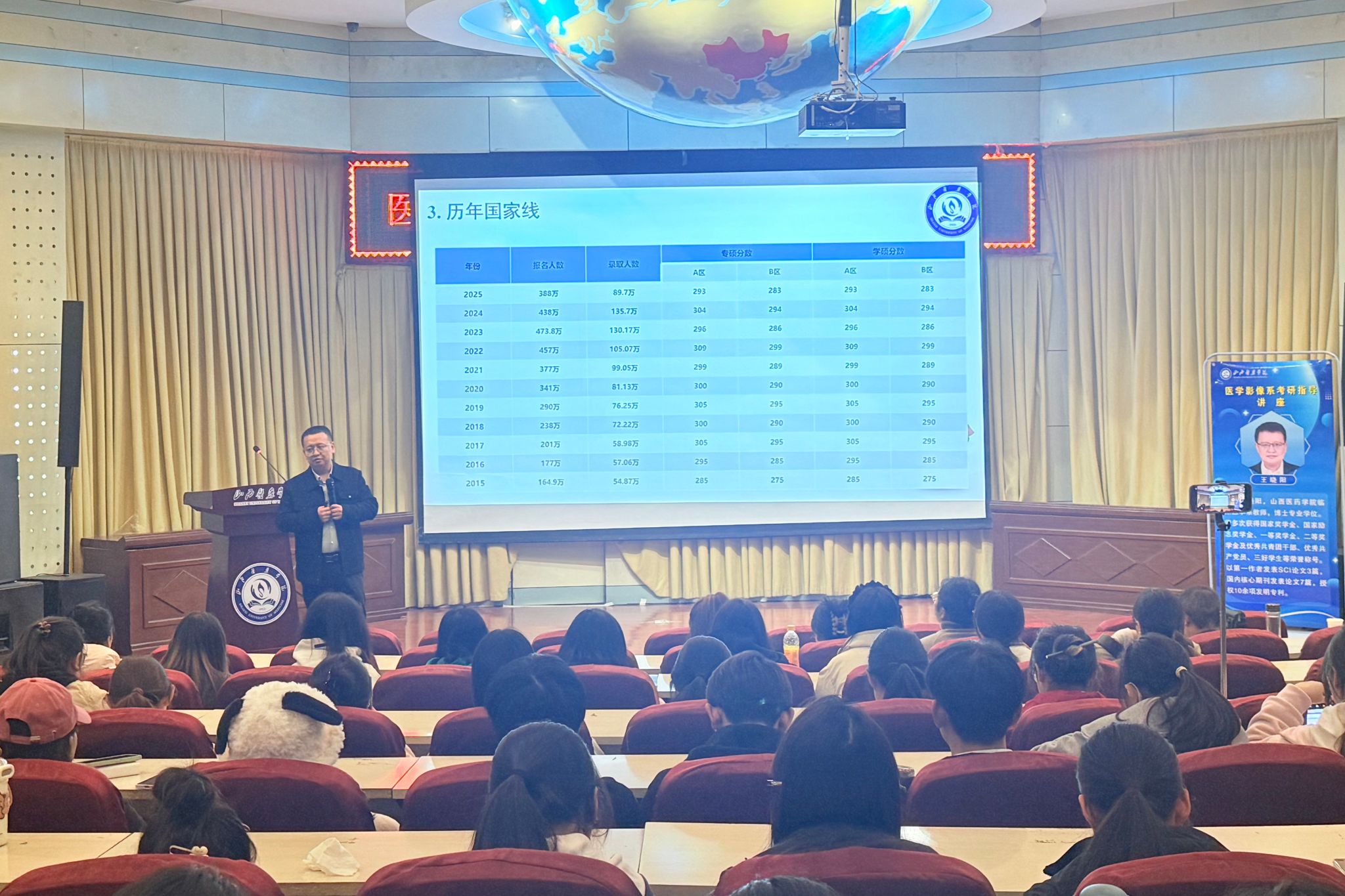 为帮助医学影像系学子明晰考研路径,精准规划升学与职业发展,医学影像系特邀我校优秀校友、系辅导员王晓阳博士针对新生和高年级学生分别在两校区开展学业规划与考研指导系列讲座。医学影像系党总支书记褚希辉主持,主任杨兴益讲话,党总支副书记赵彦文及各年级辅导员、学业导师和学生参加。